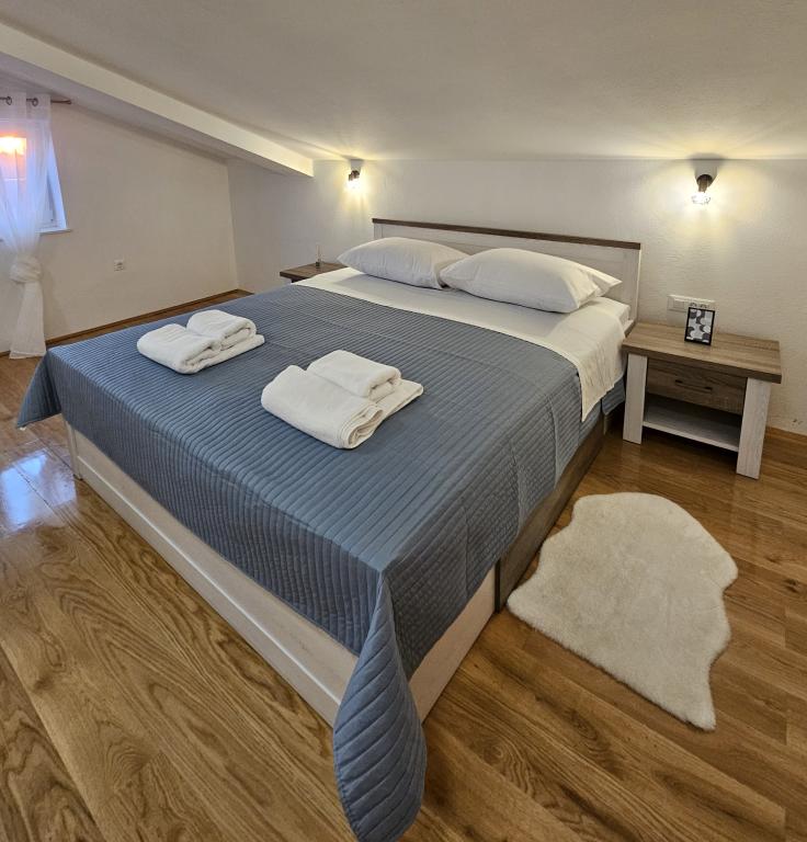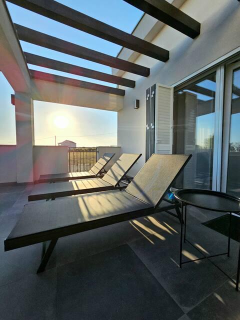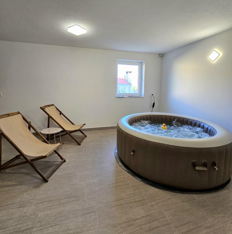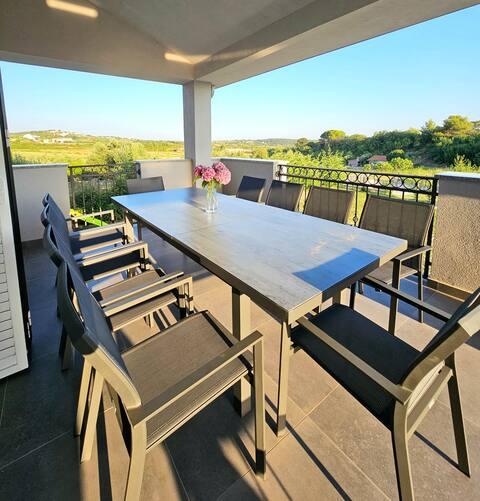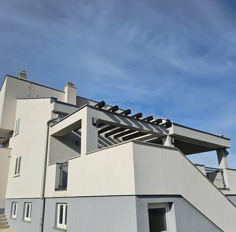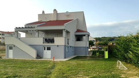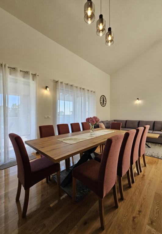Witamy w rodzinnym domu wakacyjnym o powierzchni 324 m² w pobliżu Zadaru – przestronnym domu zaprojektowanym z myślą o relaksie i zabawie. Rodzice mogą zrelaksować się w prywatnym jacuzzi lub poćwiczyć w w pełni wyposażonej siłowni, podczas gdy dzieci będą korzystać z własnego, bezpiecznego placu zabaw na świeżym powietrzu. Dom komfortowo pomieści do 10 gości i oferuje pięć starannie urządzonych sypialni, trzy nowoczesne łazienki, dwie w pełni wyposażone kuchnie, jadalnię oraz jasny salon z telewizorem. Wydzielone miejsce do pracy i pralnia zapewniają dodatkową wygodę podczas dłuższych pobytów. Wyjdź na w pełni ogrodzony, prywatny dziedziniec, który zapewnia prywatność i bezpieczeństwo, idealny dla rodzin z dziećmi. Atutem tego domu jest przestrzeń do wypoczynku na świeżym powietrzu – dwa balkony z leżakami i duży taras z grillem, przestronna jadalnia na świeżym powietrzu oraz relaksujące miejsce do opalania – idealne na ciepłe dalmatyńskie wieczory. Na miejscu dostępny jest bezpłatny prywatny parking.