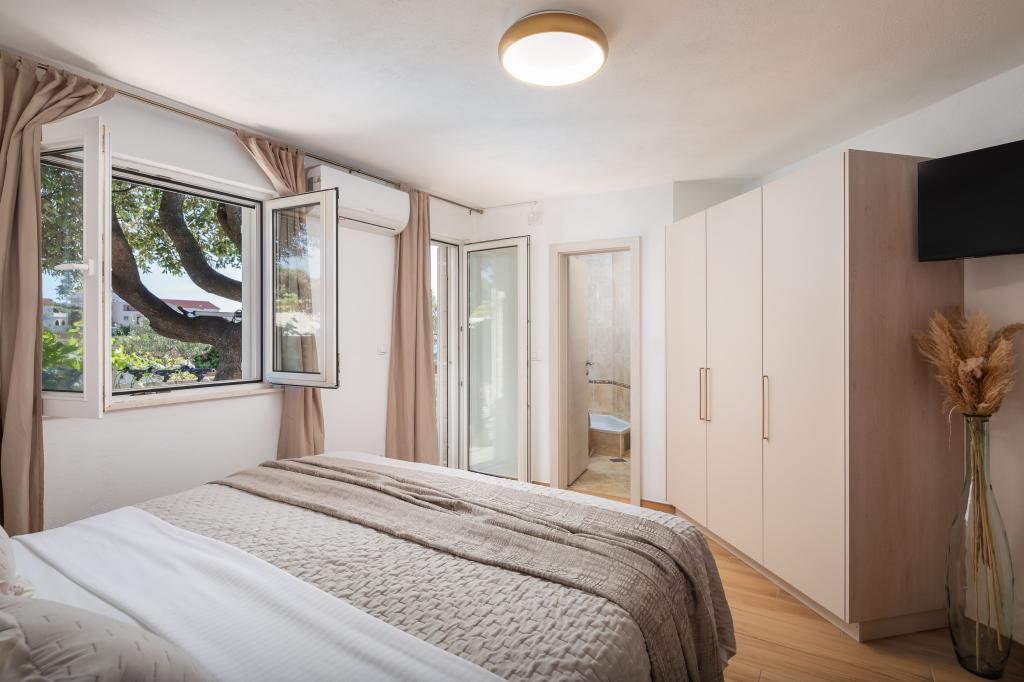 Byliśmy u Mariji kilka razy i za każdym razem z niecierpliwością czekamy na spokój i relaks. Najważniejszym wydarzeniem jest widok. Rano przy kawie, w ciągu dnia podczas opalania lub wieczorem przy najpiękniejszych zachodach słońca. Nie mamy siebie dość. Dwa baseny, plac zabaw i grill na świeżym powietrzu to kolejne szczególne cechy, które naprawdę doceniamy. Obiekty są na najwyższym poziomie i wiele zainwestowano w to, aby Twój pobyt był jak najbardziej komfortowy i relaksujący. Pokoje są duże i umeblowane w wysokim standardzie. Marija i jej rodzina są bardzo przyjaźni, serdeczni i pomocni. Zawsze lubimy wracać i gorąco polecamy pobyt tutaj rodzinom z dziećmi w każdym wieku. Plaża i małe miasteczko znajdują się w odległości spaceru. Wszystko, czego potrzebujesz, znajduje się w pobliżu. Gorąco polecamy wycieczki do Trogiru, Splitu, Promostenu lub Szybenika. Można także wypożyczyć łodzie lub zarezerwować wycieczki łodzią w małym porcie w Razanj.