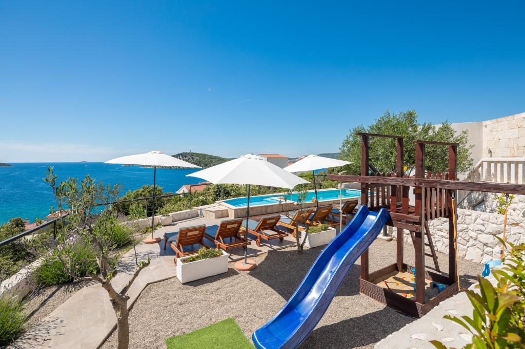 Urocza willa z pięknym widokiem na morze znajduje się w Ražanj, małym miasteczku w sercu Dalmacji. Willa Marija to idealny wybór na wakacje z rodziną lub przyjaciółmi w spokojnej, śródziemnomorskiej atmosferze. W willi znajdują się 4 komfortowe sypialnie, 3 nowoczesne łazienki, salon, jadalnia i wyposażona kuchnia. Przed willą znajduje się przestronny taras z basenem i leżakami, z którego roztacza się widok na morze. To idealne miejsce do opalania się i podziwiania zachwycających zachodów słońca. Na tarasie znajduje się również jadalnia na świeżym powietrzu i grill. Goście mają do dyspozycji prywatny parking na ogrodzonym podwórku. Położenie willi oferuje liczne możliwości wypoczynku: pływanie w krystalicznie czystym morzu, relaksujące spacery, jazdę na rowerze po dobrze utrzymanych ścieżkach, rejsy statkiem i wycieczki do parków narodowych. W pobliżu znajdują się również popularne miejscowości turystyczne, takie jak Zadar, Szybenik, Primošten, Trogir i Split, które oczarują Cię swoim pięknem i bogatym dziedzictwem kulturowym.