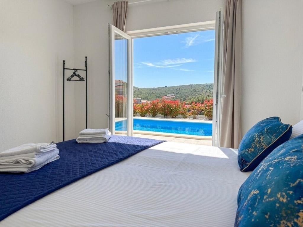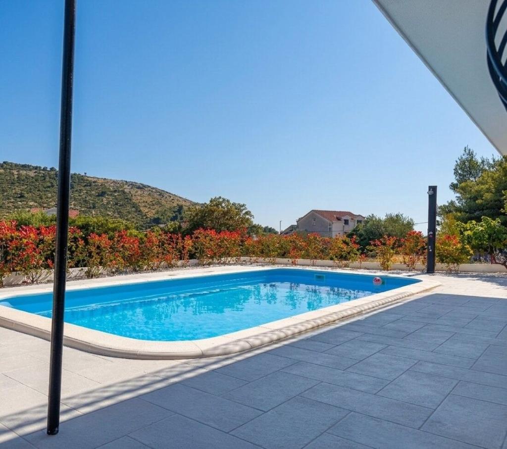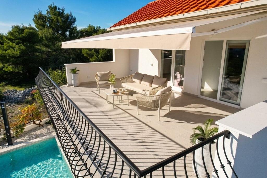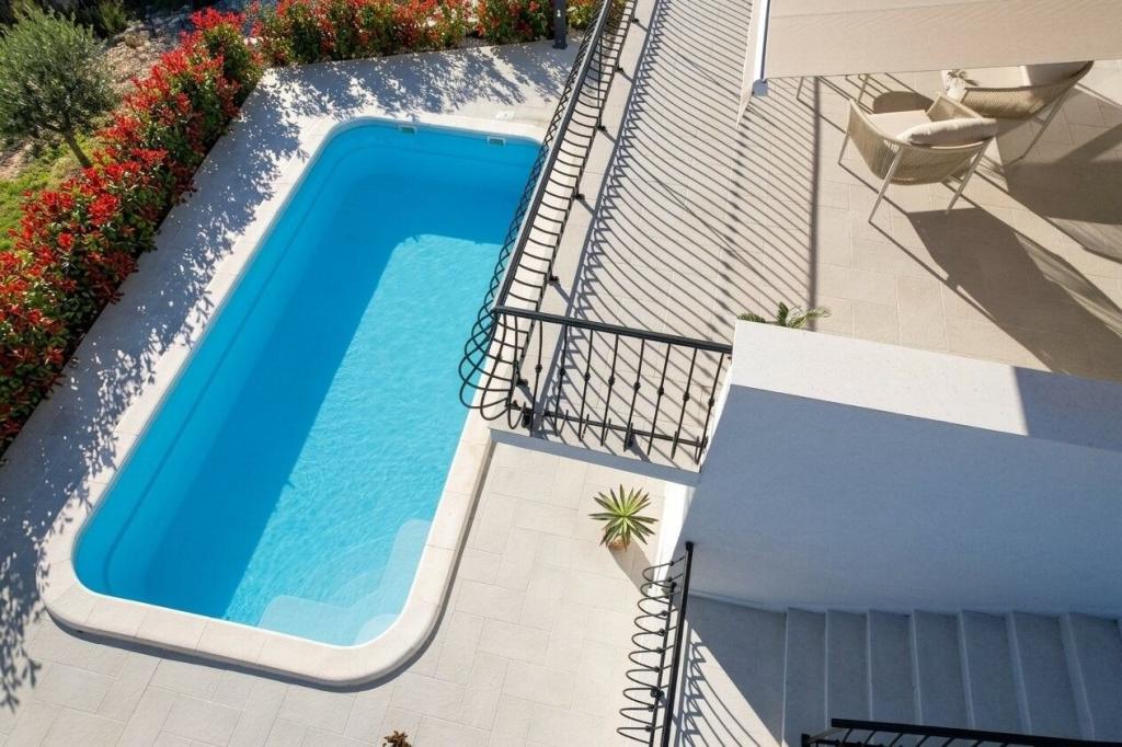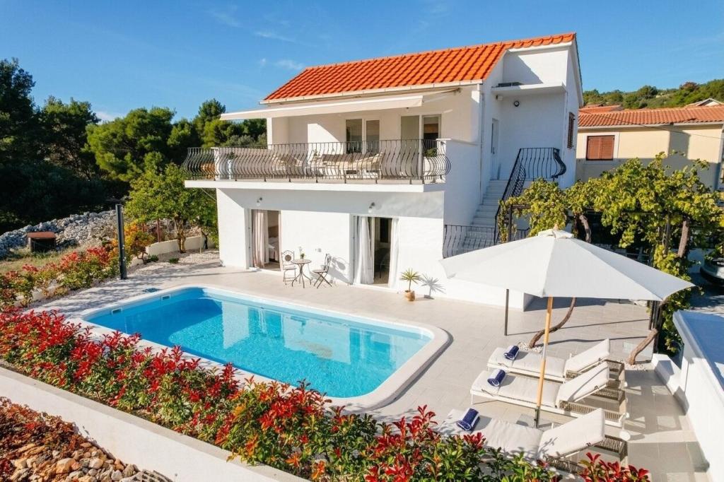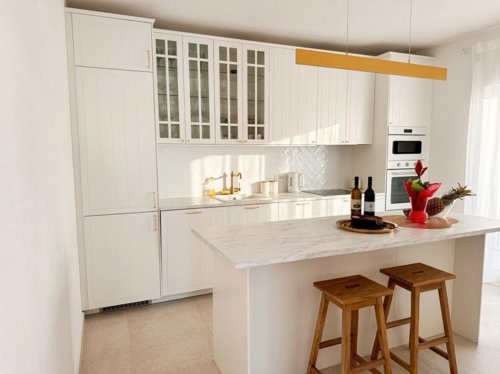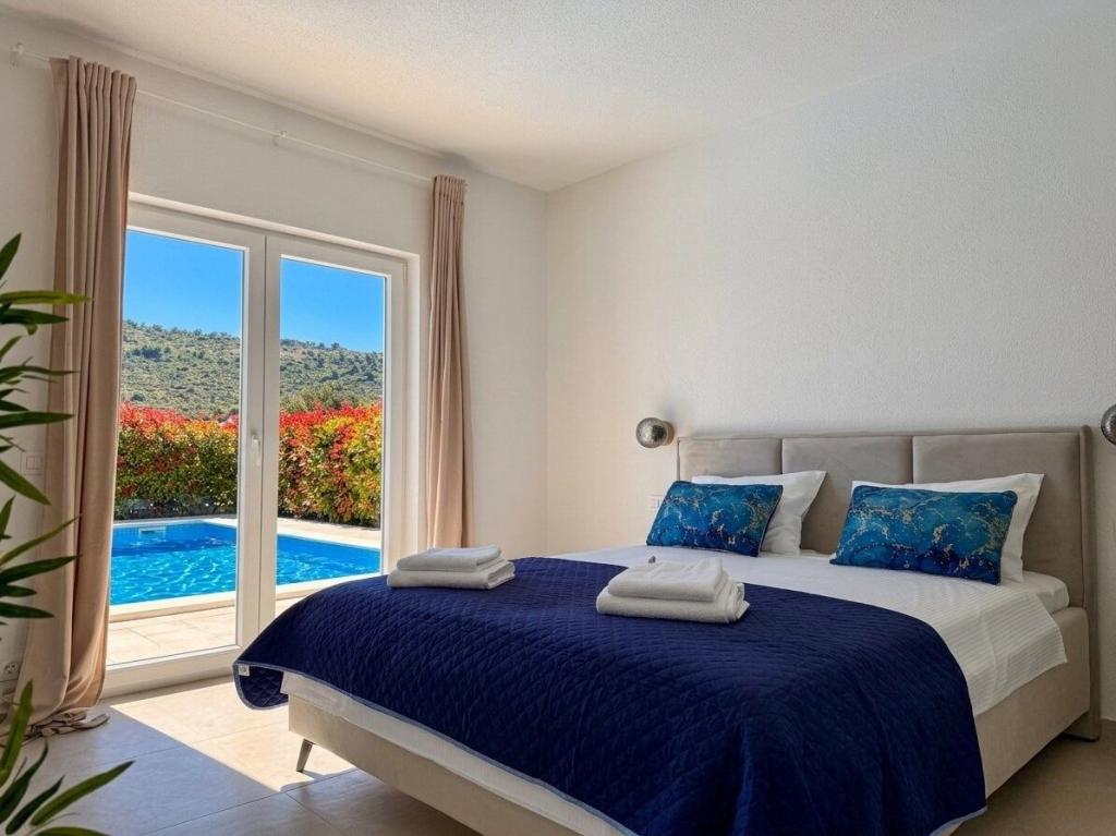 Opłata jest wliczone w cenę.Ta elegancka willa oferuje idealne połączenie komfortu i stylu na dwóch przestronnych piętrach. Oferuje cztery pięknie urządzone sypialnie – dwie dogodnie zlokalizowane na parterze i dwie na piętrze – oraz trzy nowoczesne łazienki. Na parterze znajduje się w pełni wyposażona, stylowa kuchnia oraz przytulny salon, idealny do relaksu lub spotkań towarzyskich. Na piętrze znajduje się przestronny taras z wygodnym zestawem wypoczynkowym i parasolem, idealny do relaksu w ciepłe wieczory lub podziwiania widoków. Strefa zewnętrzna została zaprojektowana z myślą o relaksie i spotkaniach towarzyskich, z prywatnym basenem z leżakami, przytulnym kącikiem wypoczynkowym przy kominku oraz dużym stołem jadalnym na świeżym powietrzu, który może wygodnie pomieścić do ośmiu osób.