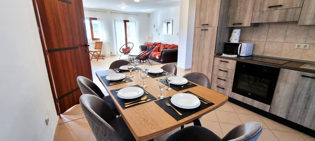 Villa Casa Mia znajduje się w Sabunike, zaledwie 200 m od morza i głównej piaszczystej plaży, która lokalnie nazywana jest Queen's Beach lub światowej sławy Queen Beach. Sabunike jest przedmieściem Privlaki i znajduje się w lagunie Nin. Ta atrakcyjna okolica jest najpiękniejszym klejnotem Riwiery Zadarskiej. Villa Casa Mia oferuje trzy, w pełni wyposażone, nowoczesne apartamenty. Dwa duże apartamenty mają 3 sypialnie z podwójnym łóżkiem, w pełni wyposażoną kuchnię, jadalnię i salon, 2 duże łazienki i 2 duże tarasy z pięknym widokiem, ogrodem i dużym odkrytym basenem przed domem. Wszystkie apartamenty wyposażone są w klimatyzację, telewizor z płaskim ekranem, serwis Netflix, zegar i bezpłatną szybką sieć WIFI. Kolejny mniejszy apartament jest prawie taki sam, ale ma 1 pokój z podwójnym łóżkiem. W ogrodzie znajduje się zawsze dostępny kominek oraz duży kryty, osłonięty i podgrzewany basen, który zapewni doskonały komfort i prywatność podczas wakacji