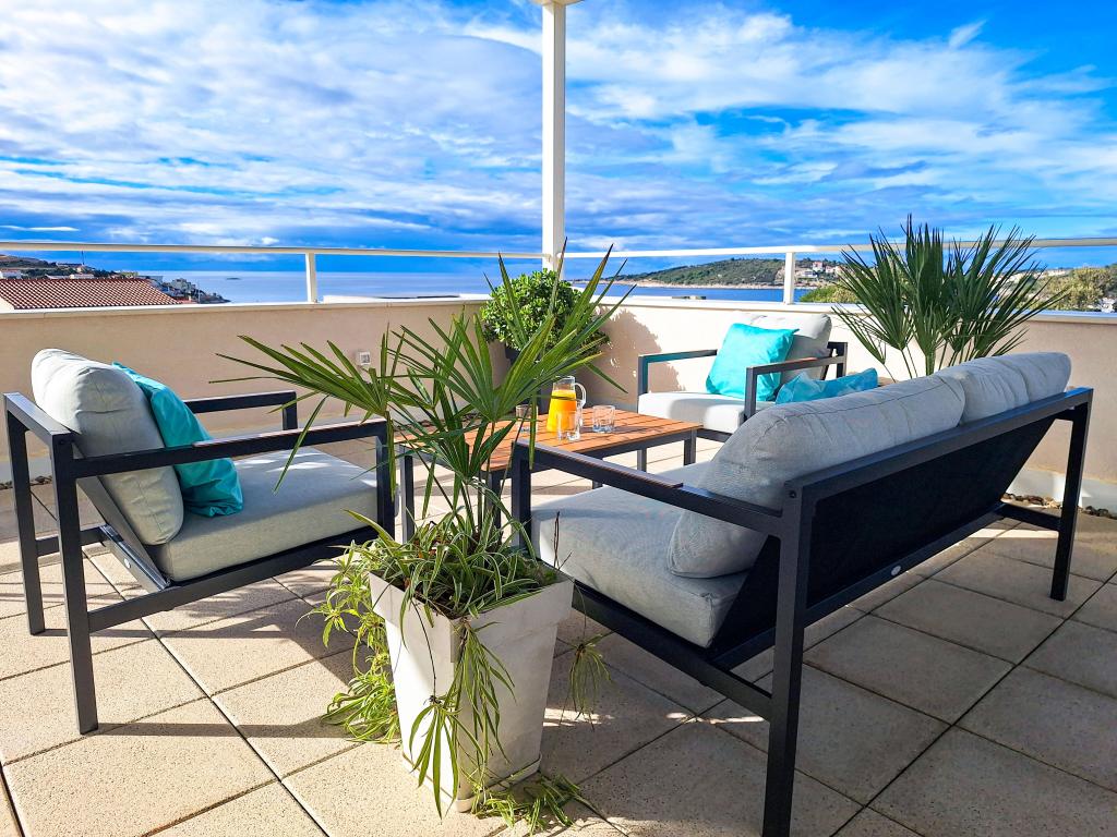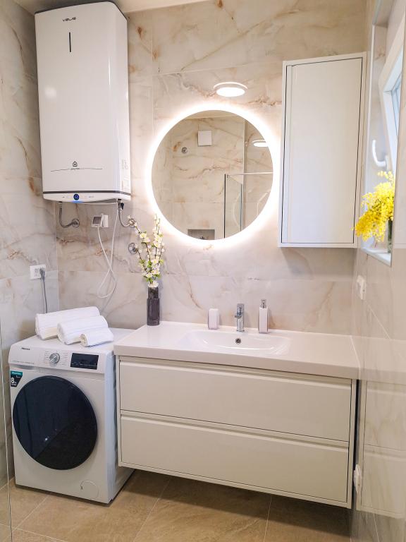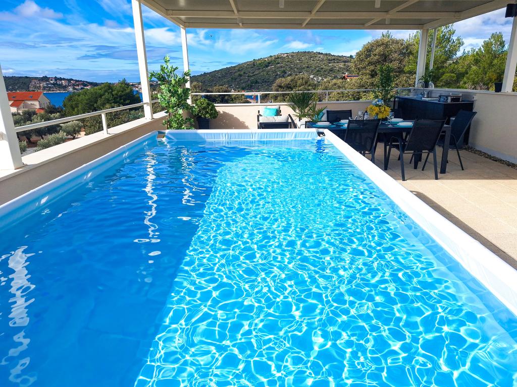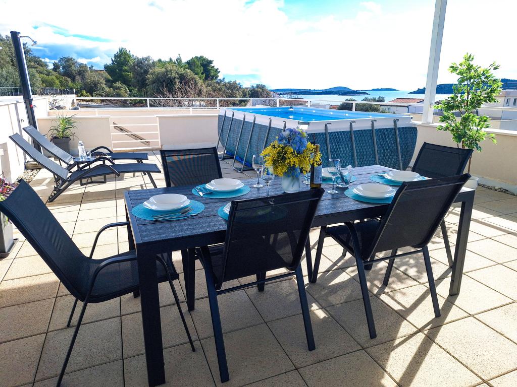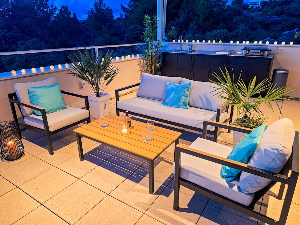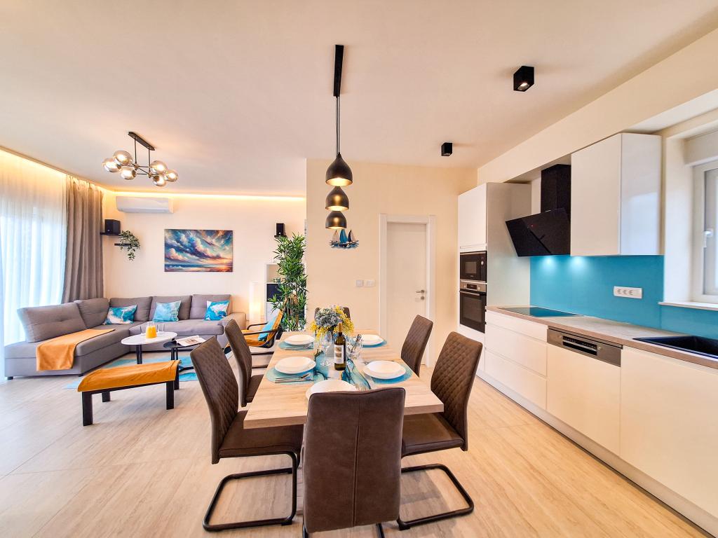 Witamy w Tesa, nowej, nowoczesnej willi, gdzie możesz w pełni cieszyć się czasem spędzonym z rodziną lub przyjaciółmi. Ta elegancka willa, która pomieści maksymalnie 6 osób, oferuje w pełni wyposażoną kuchnię, nowoczesną łazienkę z kabiną prysznicową i pralko-suszarką, a także klimatyzację i telewizor w każdym pokoju. Taras na dachu z widokiem na morze i wyspy oferuje podgrzewany basen, zewnętrzny prysznic i leżaki, idealne do relaksu w ciągu dnia przy ulubionej książce lub muzyce z głośników, a wieczorem do relaksu pod gwiazdami przy kieliszku ulubionego drinka. Taras z w pełni wyposażoną kuchnią (grill, kuchenka, lodówka), stołem jadalnym i częścią wypoczynkową daje możliwość spędzenia całego dnia na świeżym powietrzu. Gotowanie w przyjemnej morskiej bryzie sprawi, że to doświadczenie będzie niezwykle przyjemne. Idealna, centralna lokalizacja ze wszystkimi niezbędnymi udogodnieniami i pięknymi plażami oddalonymi o zaledwie 200 metrów, w otoczeniu zieleni i pięknie zagospodarowanego ogrodu stworzonego do relaksu, zapewnią Ci niezapomniane wakacje.