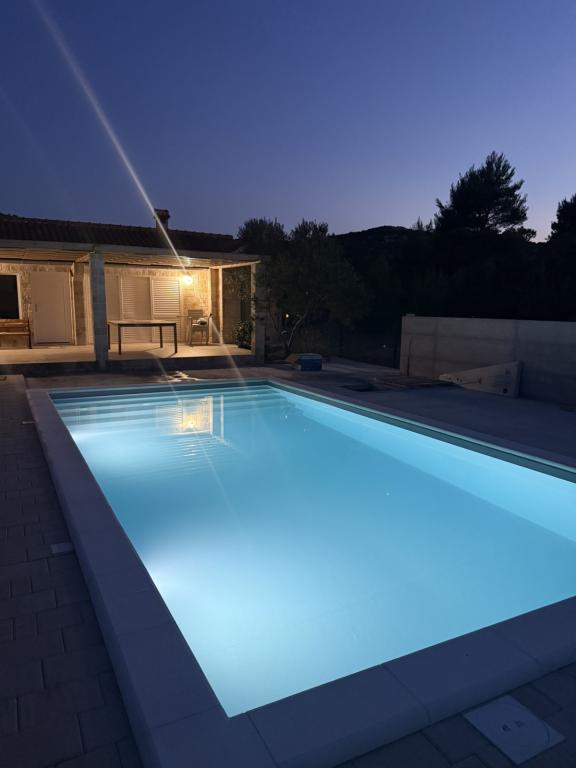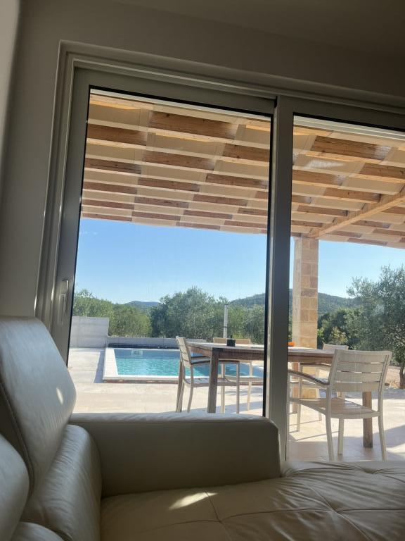 W pełni wyposażona willa z ogrzewanym basenem 4x8, prysznicem solarnym, leżakami, krzesłami, dużym tarasem i wbudowanym grillem. Parterowy dom położony jest w głębi lądu, między miejscowościami Tisno i Tribunj, w miejscowości Ivinj. Posiada duży ogród o powierzchni 3500 m², z 80 drzewami oliwnymi, figowcami, mnóstwem lawendy i innych śródziemnomorskich kwiatów... Odległość od centrum miasta wynosi 3 km, a obiekt położony jest przy drodze regionalnej Vodice – Tisno, Murter. W pobliżu znajduje się Park Narodowy Kornati i Wodospady Krka.