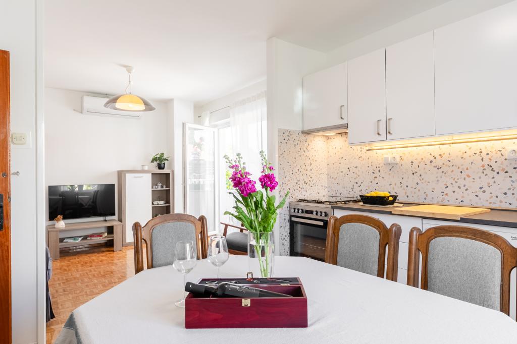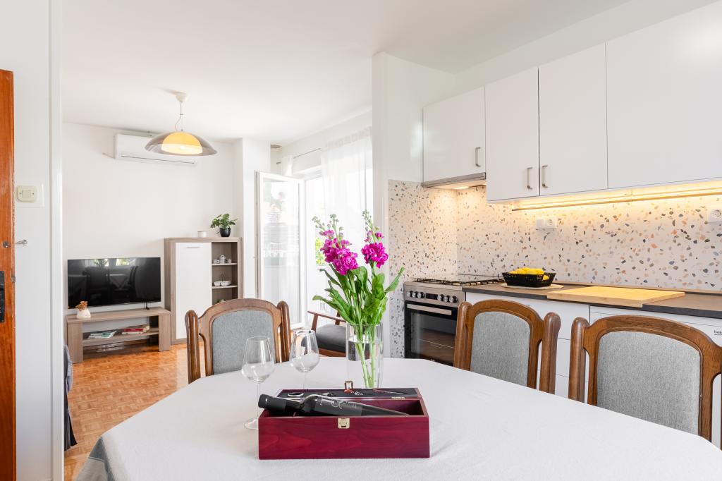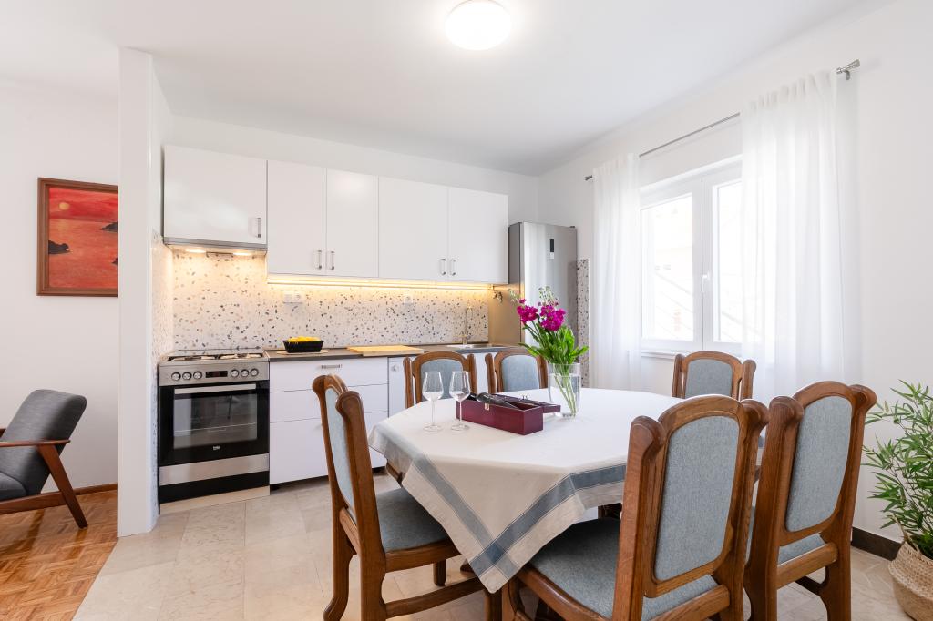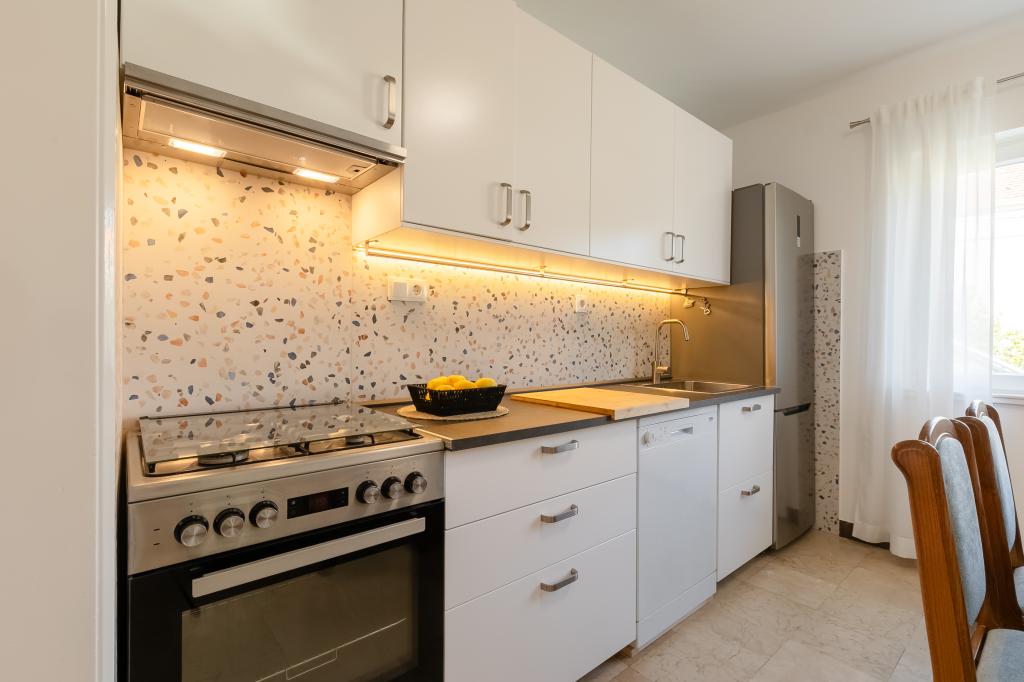 Ten duży, wolnostojący dom rodzinny znajduje się w spokojnej części Vela Luka, mniej niż pięć minut od centrum, i oferuje 3 sypialnie, w pełni wyposażoną kuchnię ze zmywarką i piekarnikiem, duży salon, łazienkę z prysznicem, duży taras i 2 prywatne miejsca parkingowe. Bezpłatne Wi-Fi, klimatyzacja w salonach, pralka, smart TV, suszarka do włosów, żelazko są dostępne. Ręczniki i pościel są wliczone w cenę. Cała nieruchomość z dużym ogrodem jest do Twojej dyspozycji. Wyspa Korcula to raj dla rowerzystów, a ten dom ma miejsce do przechowywania rowerów.