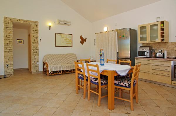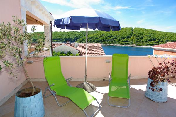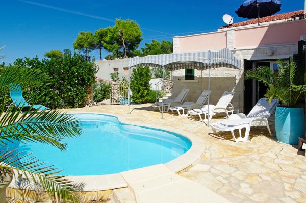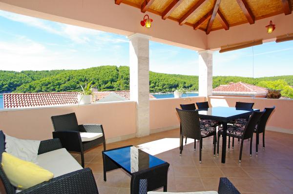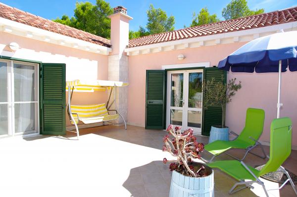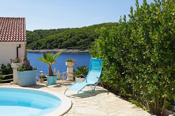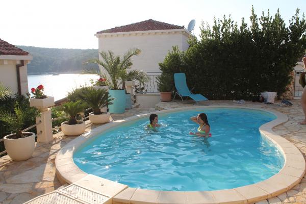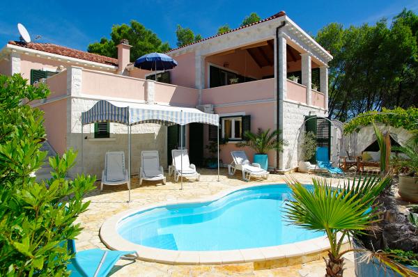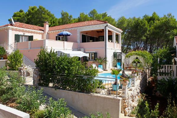 Na wyspie, 8 km od Vela Luka, w zatoce Triporte, na południowo-zachodnim wybrzeżu wyspy z drzew sosnowych do morza, z krystalicznie czysta woda, wspaniałego podwodnego świata i pięknych skalistych i piaszczystych plaż położonych Villa Rosada z widokiem na południe, zachód i wschód. W przedniej części willi znajduje się basen z tarasem do opalania i tarasem z palmy, liście laurowe, winorośli i kwiatów. Basen ma bezpośredni dostęp do morza jest tylko 20 m, z prawie prywatnej plaży i Mulet do cumowania statku. Na pierwszym piętrze są dwie sypialnie z podwójnymi łóżkami i łazienką, duży pokój dzienny z kuchnią z wyjściem na zadaszony ganek na wakacjach, restauracji, a także innym dużym tarasem do opalania i po schodach na basenie. Na parterze znajduje się sypialnia z trzema łóżkami, łazienka i duży pokój z kominkiem, gdzie basen znajduje, a kanapa, która może zostać wyciągnięty na łóżku. Wszystko jest klimatyzowany iw pełni wyposażone (pralka, suđerica, TV, bezprzewodowy dostęp do Internetu, a wszystkie urządzenia kuchenne). Zabezpieczony parking na 2 samochody.