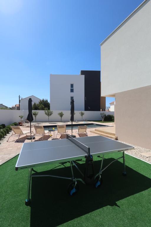 Witamy w Villi Amara, nowocześnie urządzonym domu wakacyjnym położonym w malowniczej miejscowości Zaton, niedaleko Zadaru. Ta elegancka willa z prywatnym basenem idealnie nadaje się na spokojny i relaksujący wypoczynek z rodziną lub przyjaciółmi, z dala od miejskiego zgiełku, a jednocześnie w pobliżu wszystkich niezbędnych udogodnień. Willa rozpościera się na dwóch piętrach i oferuje przestronny salon, w pełni wyposażoną kuchnię, komfortowe sypialnie z wyjściem na balkon oraz nowoczesne łazienki. Duże, przeszklone ściany łączą wnętrze z tarasem i basenem, tworząc idealną przestrzeń do relaksu na słońcu. Na dziedzińcu znajduje się prywatny basen, leżaki, grill, a także zadaszony taras ze stołem jadalnym. Do dyspozycji Gości jest bezpłatne Wi-Fi, klimatyzacja we wszystkich pokojach, telewizor Smart TV i prywatny parking. Plaże i krystalicznie czyste morze znajdują się zaledwie kilka minut jazdy samochodem, podobnie jak słynne miejsca takie jak Nin, Zadar i parki narodowe. Poczuj spokój, komfort i elegancję Dalmacji – zarezerwuj Villi Amara już dziś!